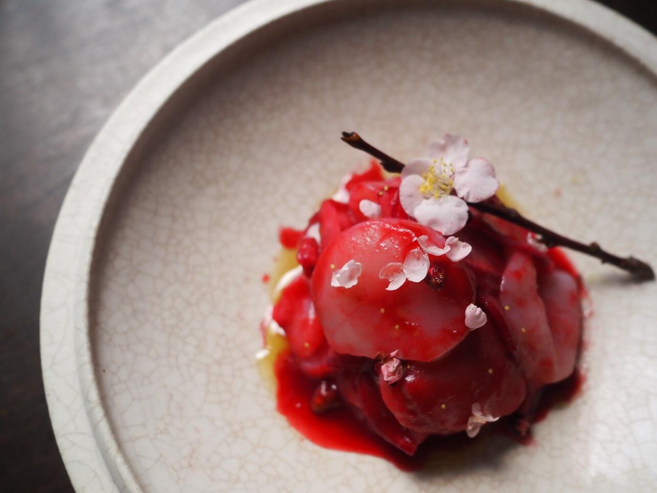 「鰹が旬の時期に、ビーツと梅干しのソースを鰹にかける料理をよく作るんです。それで、ビーツと梅のピュレに、だしプレッソ 鰹を足してみたら、とてもよく合いました。鰹のだしプレッソは、いい意味で鰹の酸味が際立っている気がして、それがビーツや梅とよく合うんですよね。パスタとか野菜を和えてもおいしいですよ」
